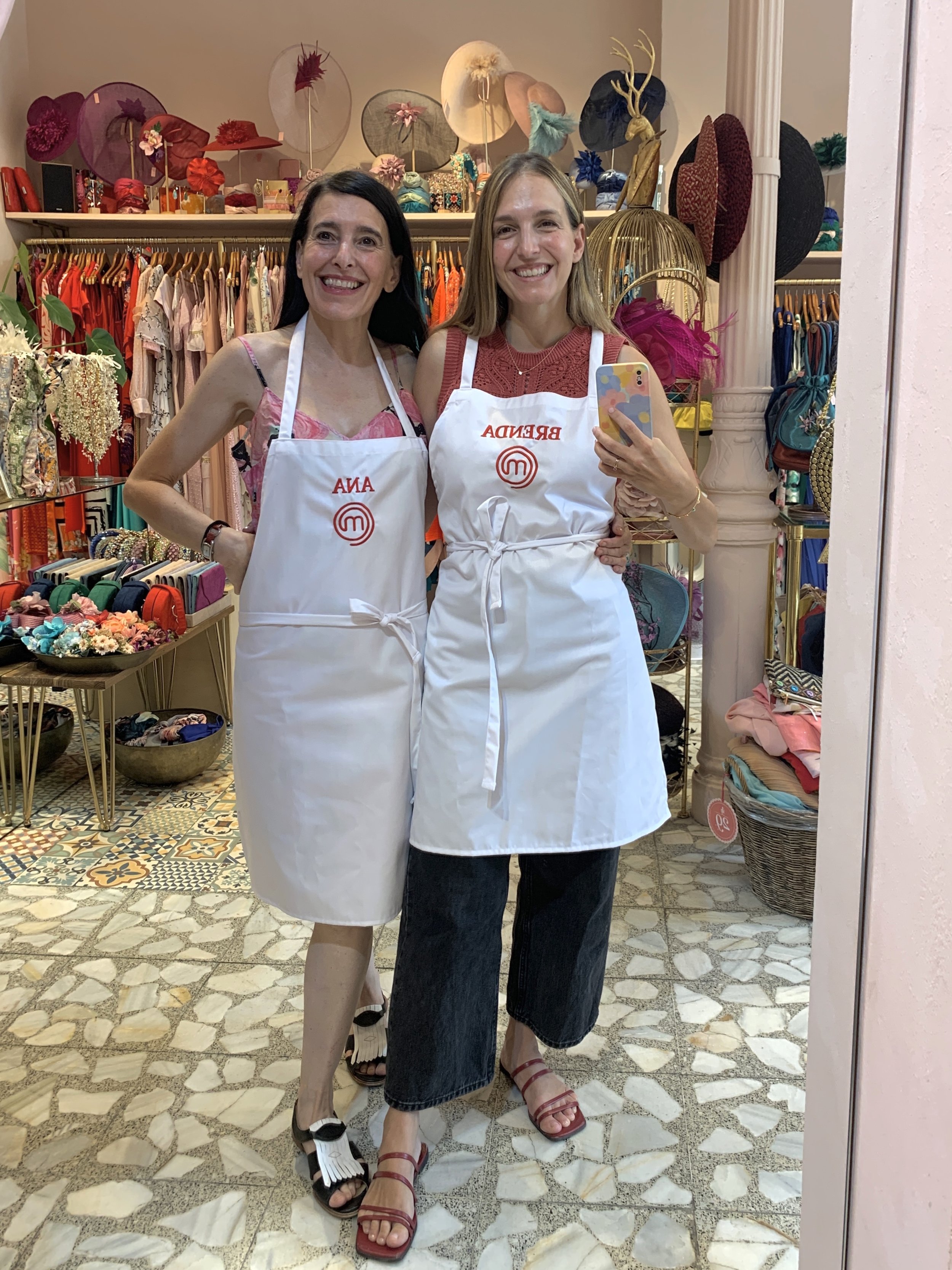 En nuestra tienda, con nuestros delantales de Masterchef, tras años de colaboraración.